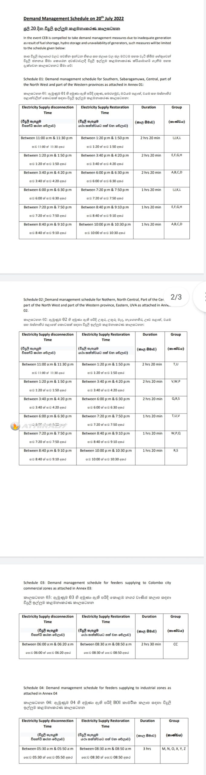 அந்த வகையில், ABCDEFGHIJKLPQRSTUVW ஆகிய பிரிவுகளில் பகலில் 2 மணிநேரம் 20 நிமிடங்களும் மற்றும் இரவில் 1 மணிநேரம் 20 நிமிடங்களும் மின்வெட்டு அமுல்படுத்தப்படவுள்ளது.