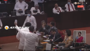 ஜனாதிபதித் தேர்தலுக்கான வாக்களிப்பு தற்போது பாராளுமன்றத்தில் நடைபெற்றுக்கொண்டிருக்கின்றது.. இந்நிலையில், சுகயீனமடைந்திருந்த எம்.பியான சமந் பிரிய ஹேரத், சேலைன் போத்தலுடன் சபைக்குள் வந்திருந்தார். அவருடைய பெயர், அட்டவணையில் 223 ஆவதாக இருக்கின்றது. எனினும், இடைநடுவிலேயே அவருக்கு வாக்களிப்பதற்கான சந்தர்ப்பத்தை வழங்குவதற்கு ஏதாவது ஆட்சேபனைகள் இருக்கின்றனவா என தெரிவத்தாட்சி அதிகாரியான பாராளுமன்ற செயலாளர் நாயகம் சபையில் கேட்டார். எனினும். எதிர்ப்புகள் எவையும் தெரிவிக்கப்படவில்லை. சேலைன் போத்தலை, உதவியாளர் ஒருவர் ஏந்தி பிடித்துக்கொள்ள. அவர், வாக்களித்துவிட்டு சபையை விட்டு வெளியேறி சென்றார். … Continue reading சேலைன் போத்தலுடன் வாக்களித்த எம்.பி !! (வீடியோ)