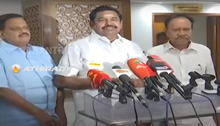 டெல்லியில் உள்ள புதிய தமிழ்நாடு இல்லத்தில் அதிமுக இடைக்கால பொதுச்செயலாளர் எடப்பாடி பழனிசாமி செய்தியளார்களை சந்தித்தார். அப்போது, பிரதமர் மோடியின் அழைப்பின்பேரில், ஜனாதிபதி ராம்நாத் கோவிந்தின் பிரிவுபசார விழாவில் கலந்துகொண்டதாக தெரிவித்தார். அப்போது, அதிமுகவின் வங்கிக்கணக்கை முடக்க வேண்டும் என ஓபிஎஸ் கடிதம் எழுதியது குறித்து செய்தியாளர்கள் கேள்வி எழுப்பினர். இதற்கு பதிலளித்த எடப்பாடி பழனிசாமி, நீதிமன்றத்தில் வழக்குகள் இருப்பதால் அதுபற்றி பதில் அளிக்க முடியாது என்றும், வழக்குகள் முடிந்த பிறகு அதுபற்றி கருத்துகள் தெரிவிக்கப்படும் என்றும் கூறினார். நீதிமன்றத்தில் மாறி மாறி வழக்கு போடப்படுவதால், கட்சி விவகாரங்கள் குறித்து செய்தியாளர்கள் கேள்வி எழுப்புவதை தவிர்க்க வேண்டும் என்றும் எடப்பாடி பழனிசாமி கேட்டுக்கொண்டார்.