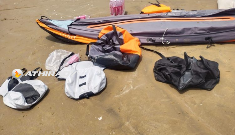 குறித்த படகுக்கு அருகில் இருந்து சுழியோடிகள் பாவிக்கும் காலணி , படகுக்கு காற்று நிரப்பும் பம் , ஜாக்கெட் , சுழியோடிகள் கடலினுள் பாவிக்கும் கண்ணாடிகள் , 18கும் மேற்பட்ட தண்ணீர் போத்தல்கள் , மிதக்கும் பைகள் என படகுக்கு அருகில் இருந்து சில பொருட்கள் மீட்கப்பட்டுள்ளன.