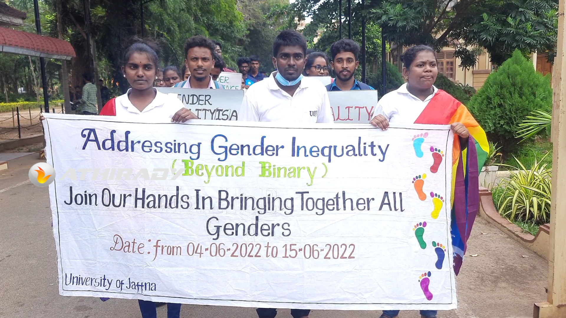மாற்றுப்பாலின சமூகத்தினருக்கு எதிரான ஒடுக்குமுறைகளை கண்டித்தும் விழிப்புணர்வை ஏற்படுத்தும் முகமாகவும் யாழ்ப்பாண பல்கலைக்கழகத்தில் பேரணி ஒன்று இன்றைய தினம் திங்கட்கிழமை இடம்பெற்றது.