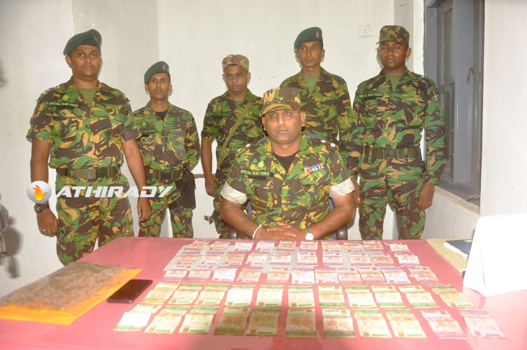 இவ்வாறு கைதான சந்தேக நபரிடம் இருந்து தொலைபேசி ஒன்று, 505 கிராம் பொதி செய்யப்பட்ட கேரளா கஞ்சா, ஒரு தொகை பணம், பல்சர் ரக மோட்டார் சைக்கிள், என்பன விசேட அதிரடிப்படையினரால் கைப்பற்றப்பட்டமை குறிப்பிடத்தக்கது.