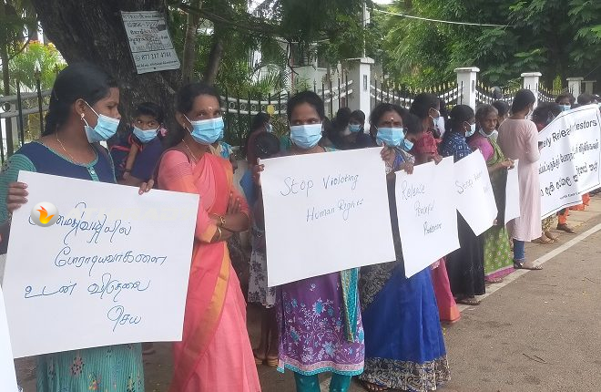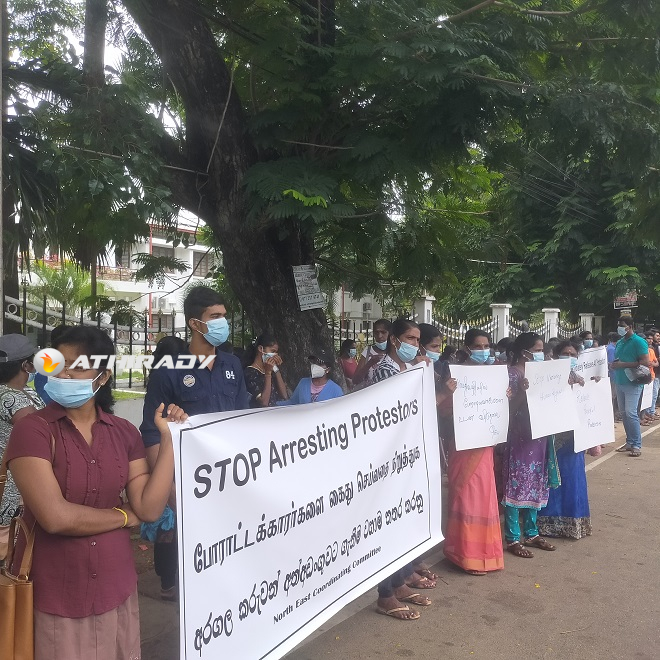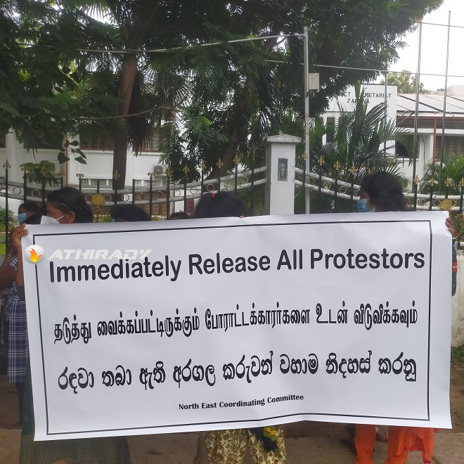 வடக்கு கிழக்கு ஒருங்கிணைப்பு குழுவின் ஏற்பாட்டில் யாழ் மாவட்ட செயலகம் முன்பாக இப் போராட்டம் முன்னெடுக்கப்பட்டது.