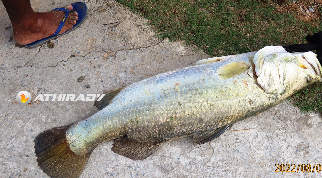 தூண்டிலில் சிக்கிய பாரிய எடையுள்ள கொடுவா மீன்!! (படங்கள், வீடியோ)