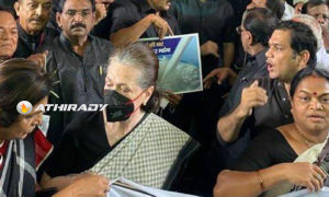 இதனால் அவர் தரையில் அமர்ந்து தர்ணாவில் ஈடுபட்டார். இதையடுத்து போலீசார் பிரியாங்காந்தி மற்றும் காங்கிரசாரை கைது செய்தனர். இதற்கிடையே டெல்லி சாலைகளில் காங்கிரஸ் தொண்டர்கள் தர்ணா, மறியலில் ஈடுபட்டனர். அவர்களை போலீசார் கைது செய்தனர். இந்த நிலையில் காங்கிரஸ் செயற்குழு உறுப்பினர்கள் மற்றும் மூத்த தலைவர்கள் பிரதமர் இல்லத்தை முற்றுகையிட்டு போராட்டம் நடத்துவார்கள் என்று அறிவிக்கப்பட்டு இருந்தது. அதன்படி காங்கிரஸ் தலைவர்களும், தொண்டர்களும் பிரதமர் இல்லத்தை நோக்கி செல்ல முயன்றனர். இதனால் டெல்லியில் பலத்த பாதுகாப்பு போடப்பட்டு உள்ளது. இதே போல் சென்னையில் தமிழக காங்கிரஸ் தலைவர் கே.எஸ்.அழகிரி தலைமையில் கிண்டியில் உள்ள கவர்னர் மாளிகை முற்றுகை போராட்டம் நடந்தது. போராட்டத்தில் ஈடுபட்டவர்கள் கவர்னர் மாளிகை நோக்கி பேரணி செல்ல முயன்றனர். அப்போது போலீசார் தடுப்புகள் அமைத்து அவர்களை தடுத்து நிறுத்தி கைது செய்தனர். கே.எஸ்.அழகிரி, தங்கபாலு, இளங்கோவன் உள்பட 1000 பேரை போலீசார் கைது செய்து வேனில் ஏற்றி சென்றனர். புதுச்சேரியில் மத்திய அரசை கண்டித்து ஊர்வலம் நடத்திய நாராயணசாமி உள்பட 200 காங்கிரசார் கைது செய்யப்பட்டனர்.