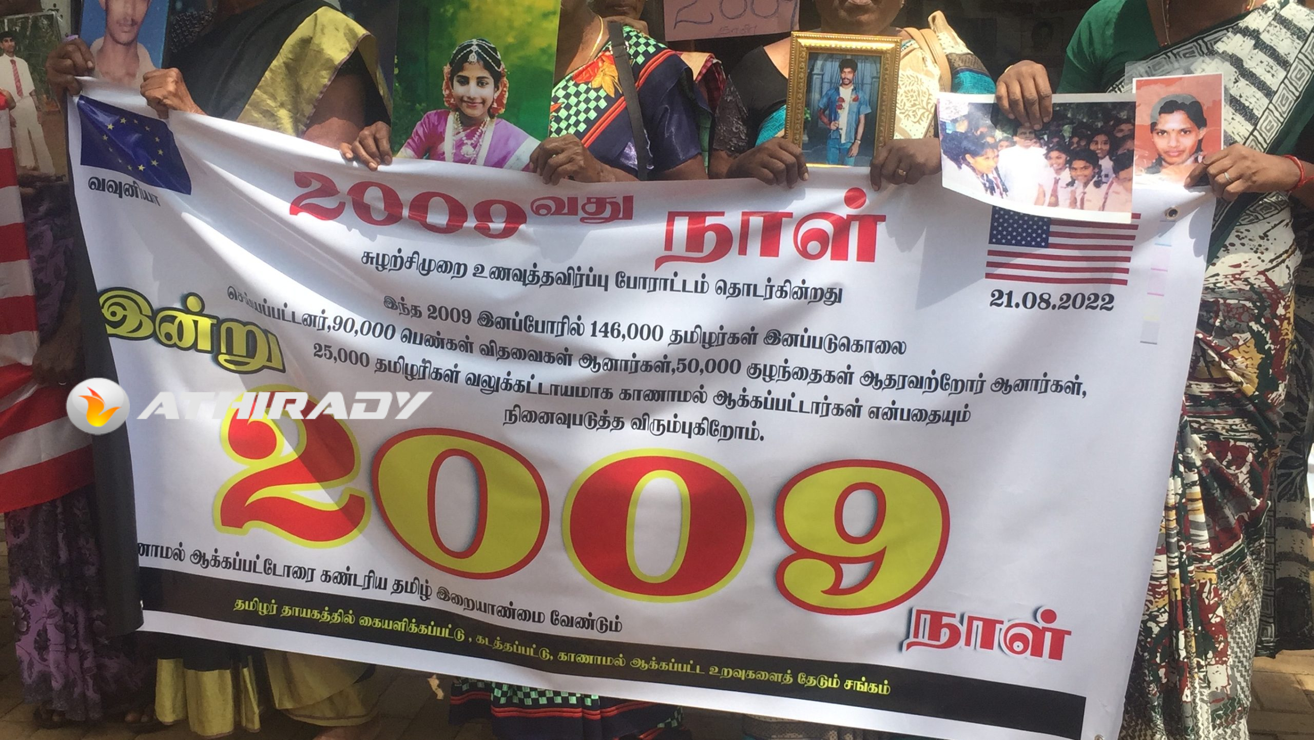 கையில் ஒப்படைக்கப்பட்ட நிலையில் காணாமல் ஆக்கப்பட்ட எமது பிள்ளைகளுக்கு நீதி கோரி நாம் வீதிக்கு வந்து 2009 நாள் ஆகிவிட்டது. சர்வதேச தலையீடே உடன் தேவை என வலியுறுத்தி காணாமல் ஆக்கப்பட்டோரின் உறவுகளால் வவுனியாவில் ஆர்ப்பாட்டம் ஒன்று முன்னெடுக்கப்பட்டது.