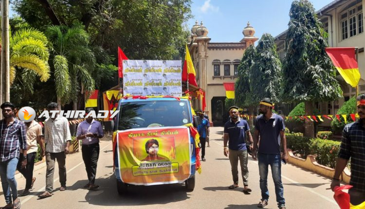 யாழ்ப்பாணப் பல்கலைக்கழக மாணவர்களின் ஏற்பாட்டில் யாழ்ப்பாணப் பல்கலைக்கழக பிரதான வளாகத்திலிருந்து குறித்த ஊர்தி பவனி ஆரம்பிக்கப்பட்டுள்ளது.