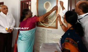 முன்னதாக அகமதாபாத்தில் உள்ள சபர்மதி ஆசிரமத்திற்கு சென்ற குடியரசுத் தலைவர், மகாத்மா காந்தி உருவப்படத்திற்கு மரியாதை செலுத்தினார். பின்னர் அங்குள்ள ராட்டையில் அவர் நூல் நூற்று மகிழ்ந்தார்.