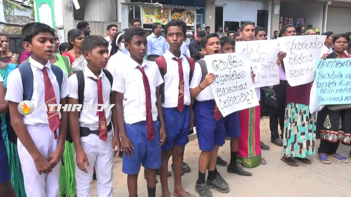 சிறுவர் தினத்திற்கு இணையாக இடம்பெற்ற இக்கவனயீர்ப்பு போராட்டத்தில் போதைப்பொருளை இல்லாதொழிக்க வேண்டியும் அதை விநியோகம் செய்கின்றவர்களுக்கு எதிராக சட்டநடவடிக்கை எடுக்குமாறும் வலியுறுத்தியும் மாணவர்களும் பெற்றோர்களும் பல்வேறு வாசகங்களை ஏந்திய சுலோக அட்டைகளை தாங்கி நின்றனர்.