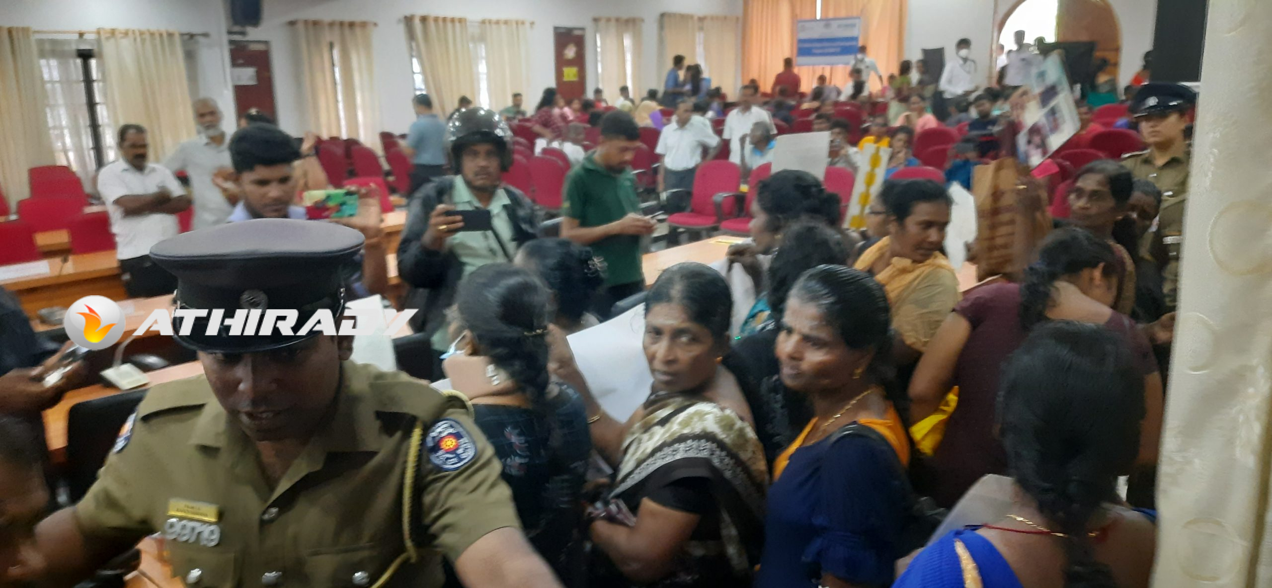 முன்னதாக யாழ் மாவட்ட செயலகத்துக்கு முன்னால் கொட்டும் மழைக்கு மத்தியிலும் வலிந்து காணாமலாக்கப்பட்டவர்களின் உறவினர்கள் போராட்டத்தில் ஈடுபட்டநிலையிலேயே மாவட்ட செயலகத்துக்குள் உள்நுழைந்தனர்.