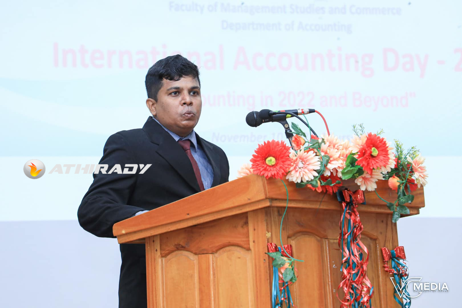 இலங்கை பட்டயக் கணக்காளர்கள் நிறுவனத்தின் (CA SriLanka) அனுசரணையுடன் முகாமைத்துவ கற்கைகள் மற்றும் வணிக பீடத்தின் கணக்கியல் துறையினால் நடாத்தப்பட்ட இந்த நிகழ்வில் அவுஸ்ரேலியாவின் ரெல்ஸரா கூட்டு நிறுவனத்ததின் குழுப் பொது முகாமையாளரும் இலங்கை பட்டயக் கணக்காளர்கள் நிறுவன உறுப்பினருமான பிரபாஸ் கலகெதர “செயற்கை நுண்ணறிவும், கணக்கியலின் எதிர்காலமும்” என்ற தலைப்பில் நிகழ்நிலை வாயிலாகத் திறவுரையாற்றினார்.