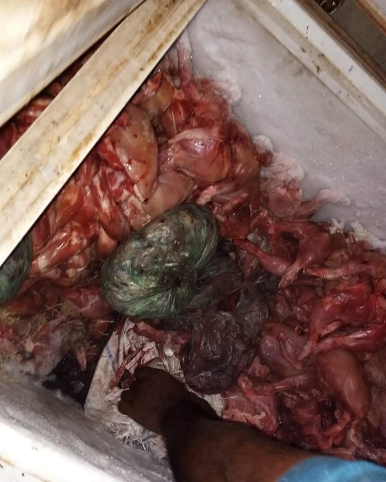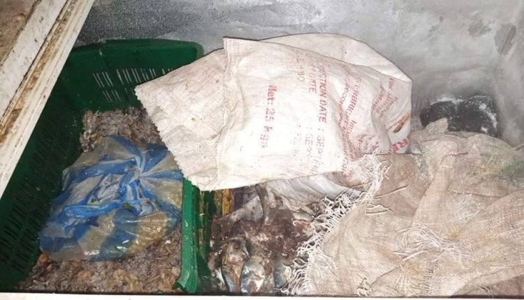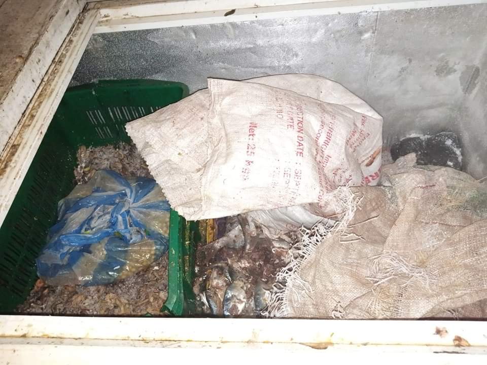 குளிர்சாதனப் பெட்டியில் சுகாதார சீர்கேடாகவும் தீங்கு விளைவிக்கும் வகையில் வைத்திருக்கப்பட்ட மீன், இறைச்சி உள்ளிட்ட உணவுப் பொருள்கள் அழிக்கப்பட்டன.