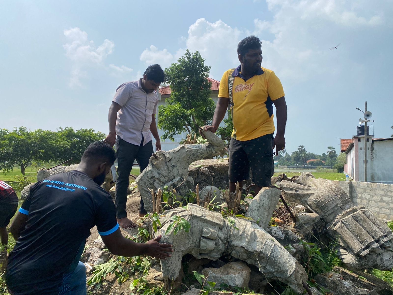 இதன்போது இதனருகில் சிதைவடைந்திருந்த நினைவிடத்தின் அருகே இருந்த பற்றைகளை வெட்ட முற்பட்டபோது இராணுவத்தினர் அதற்கு அருகில் எதுவும் செய்யமுடியாது என அறிவுறுத்தினர்.