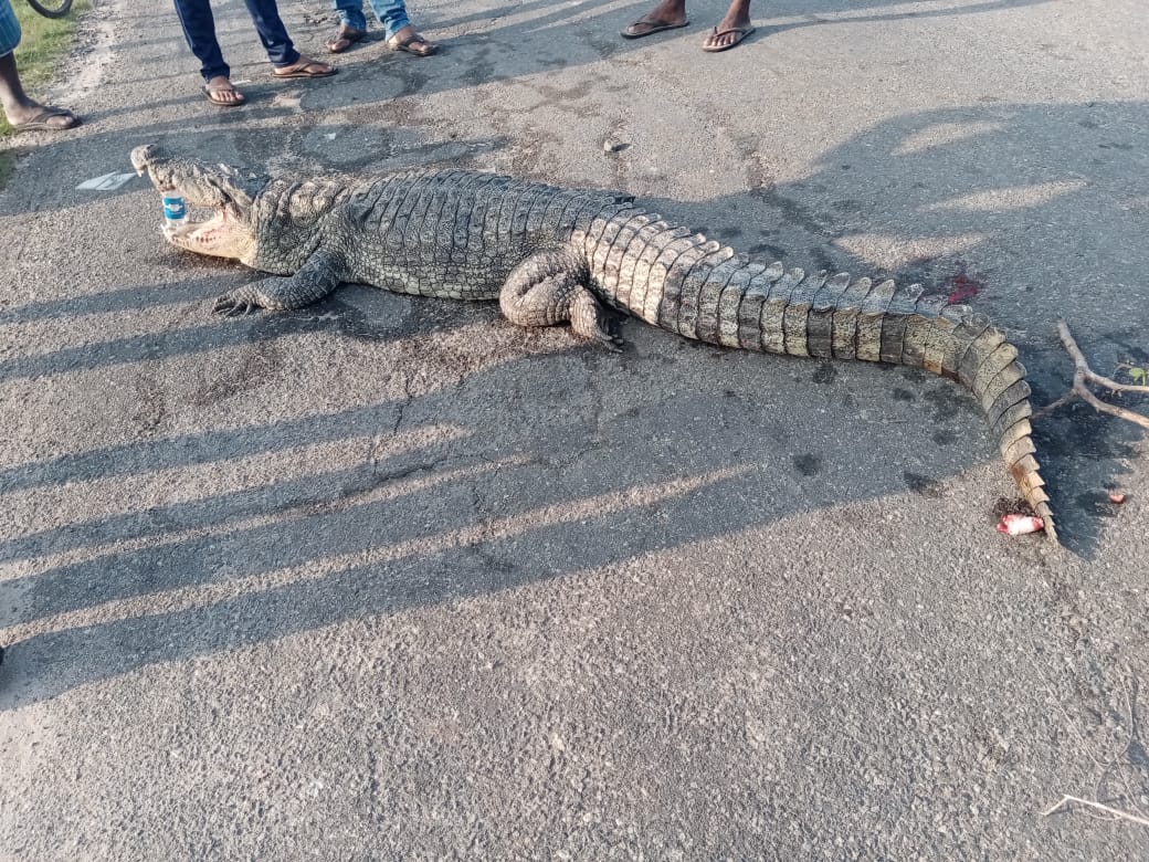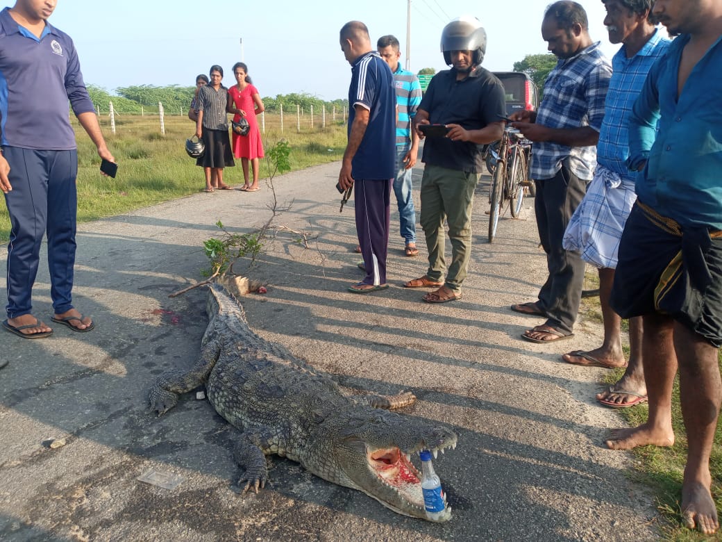 தொண்டைமானாற்றில் வீதியில் உயிரிழந்த நிலையில் முதலை!! (படங்கள்)