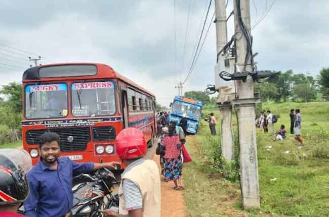 வவுனியாவில் இரு பேரூந்துகள் போட்டிக்கு ஓடியதில் அவற்றில் ஓர் பேரூந்து வீதியை விட்டு கீழிறங்கி விபத்துக்குள்ளானது.