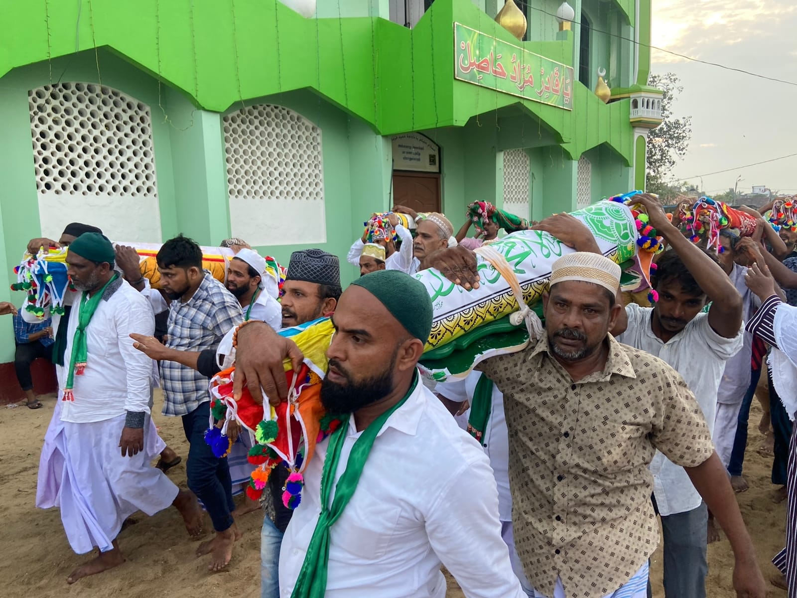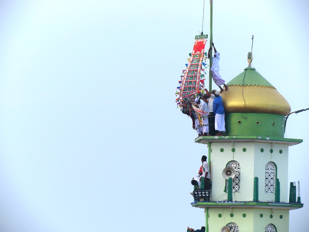 கல்முனை முஹ்யித்தீன் ஜும்ஆப் பெரிய பள்ளிவாயலில் இருந்து புனித கொடியானது உலமாக்கள், பக்கீர் ஜமாஅத்தினர், நிருவாகிகள், ஊர்மக்கள் புடைசூழ தீன் கலிமா முழக்கத்துடன் ஊர்வலமாகச் சென்று கடற்கரை பள்ளிவாசல் நாஹூர் ஆண்டகை தர்ஹா மினாராக்களில் ஏற்றி வைக்கப்பட்டது .