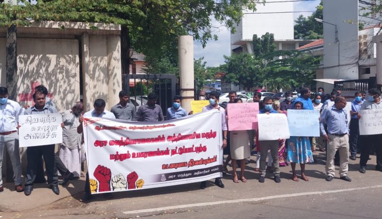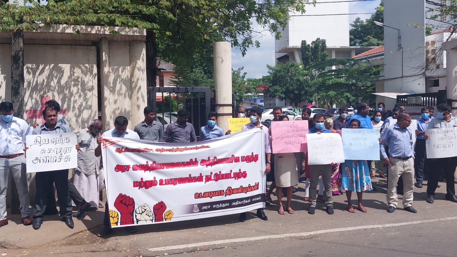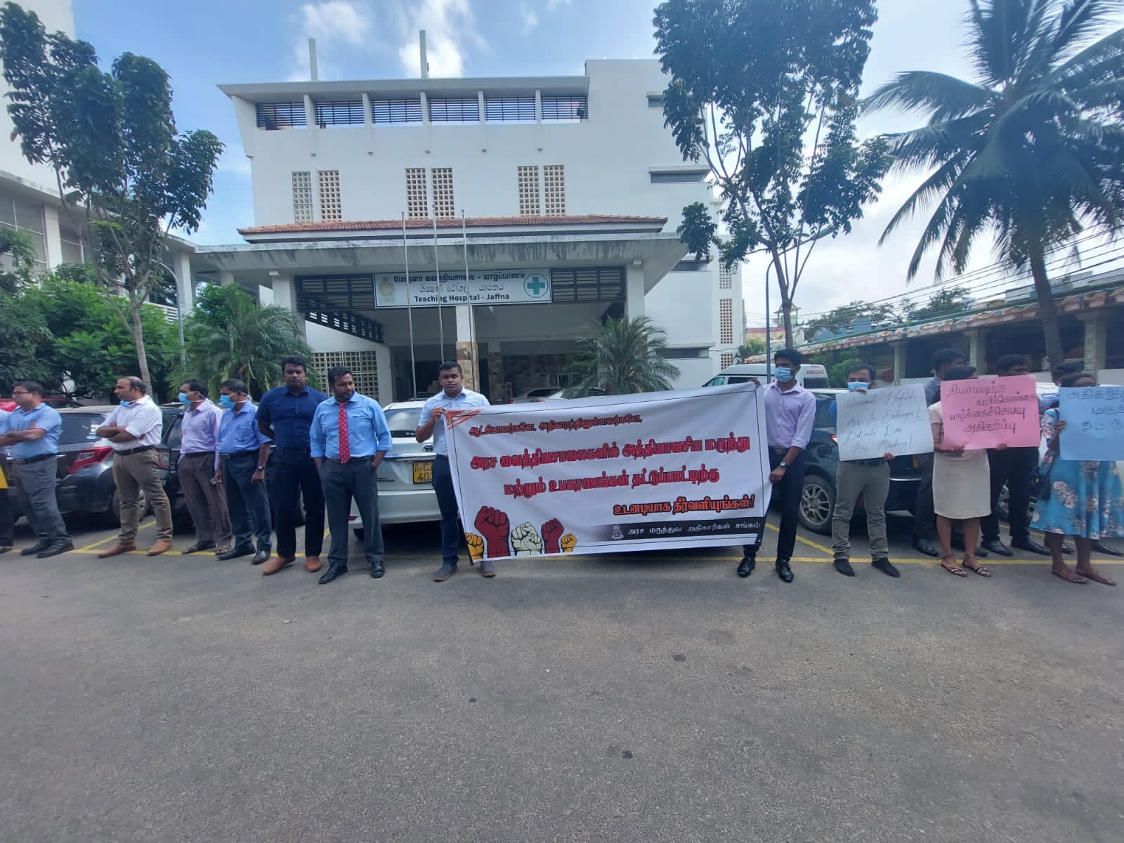 வரித் திருத்தத்தை உடனடியாக நிறுத்தவலியுறுத்தி யாழ் போதனா வைத்தியசாலை போராட்டம்!! (PHOTOS)
