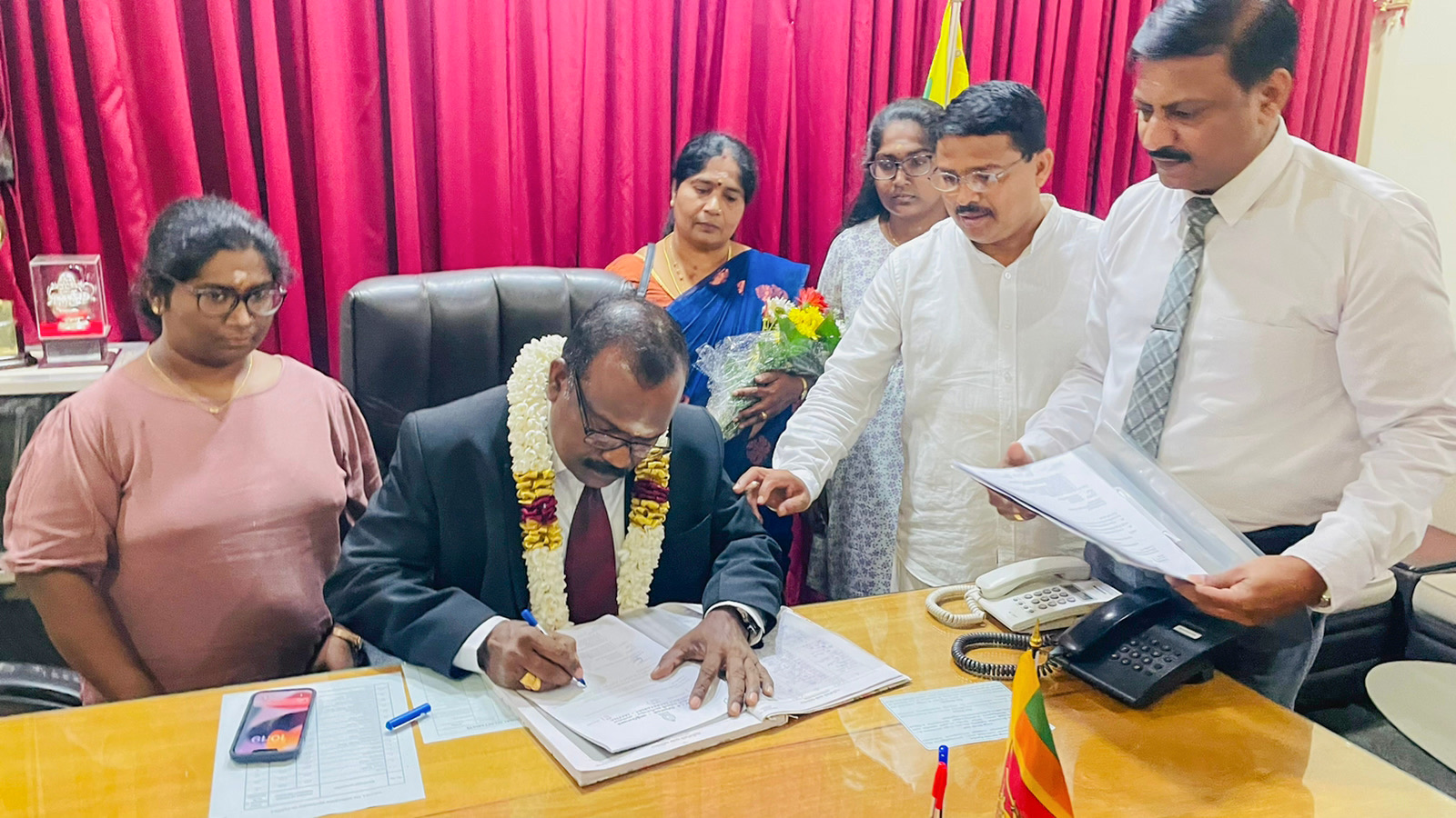 ம.பிரதீபனிடம் இருந்து கடமைகளை புதிதாக நியமனம் பெற்ற மாவட்ட செயலாளர் பொறுப்பேற்றார்.
