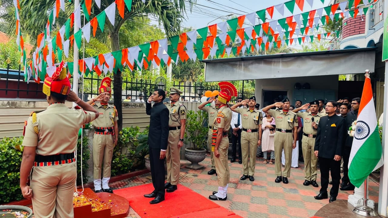 இந்திய எல்லைப் பாதுகாப்பு படையினரின் அணிவகுப்பு மரியாதையை தொடர்ந்து இந்திய துணைத்தூதுவர் ராகேஷ் நடராஜ் ஜெயபாஸ்கரன் இந்தியத் தேசியக் கொடியை ஏற்றி வைத்தார்.