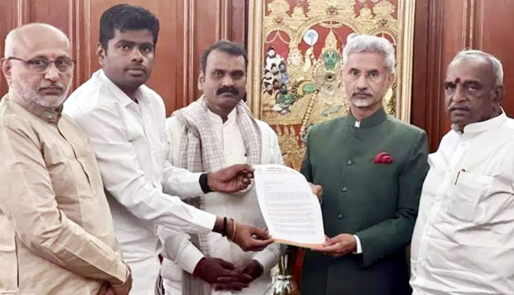 டெல்லியில் வெளியுறவுத்துறை மந்திரியிடம் கோரிக்கை மனுவை வழங்கிய பா.ஜனதா தலைவர் அண்ணாமலை!!