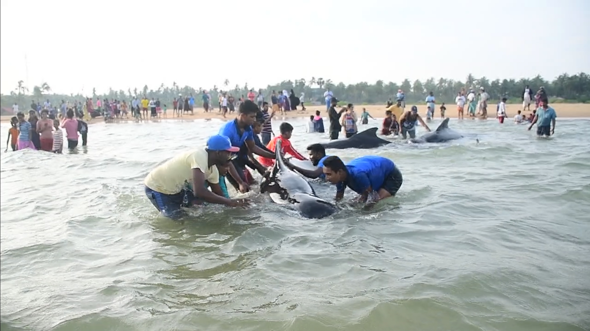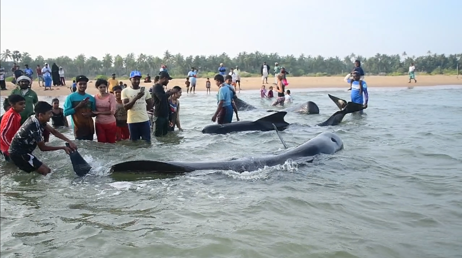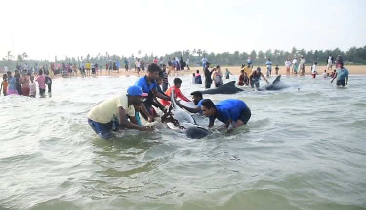 புத்தளம் கற்பிட்டி கண்டகுழி பகுதியில் 12 திமிங்கலங்கள் உயிருடன் கரையொதிங்கியுள்ளன.!! (படங்கள்)