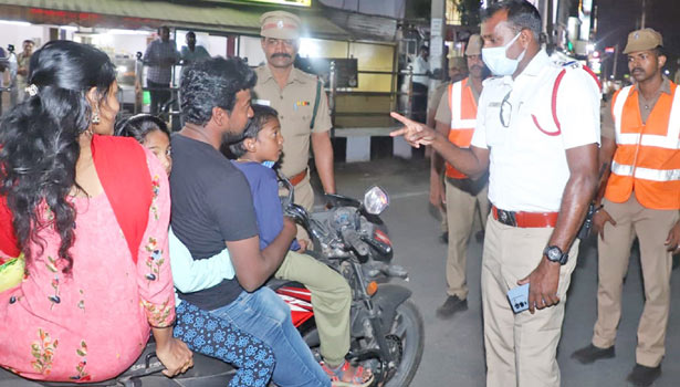 அவர்களை தடுத்து நிறுத்தி போலீசார் அபராதம் விதித்தனர்.பெண்கள் பலரும் இந்த வாகன சோதனையில் சிக்கினார்கள். குடும்பத்தோடு வந்தவர்களும் ஹெல்மெட் அணியாமல் வந்து போலீசாரிடம் மாட்டிக் கொண்டனர். மோட்டார் சைக்கிளில் வந்த வாலிபர்கள் 2 பேரை தடுத்த போலீசார் அவர்களிடம் மோட்டார் சைக்கிளுக்கான ஆவணங்களை எடுத்து வருமாறு தெரிவித்தனர். அப்போது போலீசார் அவதூறு வார்த்தைகளால் பேசியதாக கூறி அந்த வாலிபர் போலீசாரிடம் வாக்கு வாதத்தில் ஈடுபட்டார்.