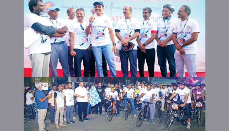 மேலும் பாராட்டு சான்றிதழ்களையும் வழங்கினார். ஆசிய வாய்முக அறுவை சிகிச்சை மருத்துவர் சங்க தலைவர் டாக்டர் குணசீலன் ராஜன், மரு.ப.சுப்ரமணியன், தமிழ்நாடு மற்றும் புதுச்சேரி வாய்முக அறுவை சிகிச்சை மருத்துவர் சங்க தலைவர் டாக்டர் ஜெ.பாலாஜி, மண்டல ஒருங்கிணைப் பாளர் டாக்டர் மணி கண்டன், இந்திய வாய் முக அறுவை சிகிச்சை மருத்துவர் சங்க துணை தலைவர் டாக்டர் ச.ஜிம்சன், ஆசிய வாய்முக அறுவை சிகிச்சை மருத்துவர் சங்க இந்திய பிரதிநிதி மற்றும் தமிழ்நாட்டின் பல் மருத்துவ கல்லூரிகளின் வாய்முக அறுவை சிகிச்சை மருத்துவ பிரிவு துறை தலைவர்கள், பல்வேறு மருத்துவர்கள், பல் மருத்துவ மாணவர்கள் மற்றும் பொதுமக்கள் இந்த மிதிவண்டி தொடர் ஓட்ட பயணத்தில் பங்கு கொண்டனர். இதற்கான ஏற்பாடுகளை அப்பல்லோ மருத்துவமனை, டெகத்லான் பெருங்குடி, அடையார் ஆனந்த பவன், தாகூர் பல் மருத்துவ கல்லூரி மற்றும் சிடார்ஸ் ஆகியோர் இணைந்து செய்திருந்தனர்.