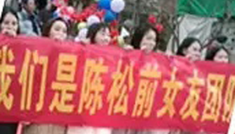 தென்மேற்கு சீனாவின் யுனான் மாகாணத்தைச் சேர்ந்தவர் சென். இவருக்கு கடந்த 6-ம் தேதி திருமணம் நடைபெற்றது. மண்டபத்தில் கோலாகலமாக நடந்து கொண்டு இருந்த திருமணத்தின்போது சில இளம் பெண்கள் கோஷம் எழுப்பிக் கொண்டிருந்தனர். அவர்கள் கையில் பேனர் ஒன்றை வைத்து இருந்தனர். அவர்கள் அனைவரும் சென்னின் முன்னாள் காதலிகள் என்பது குறிப்பிடத்தக்கது.