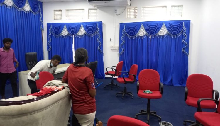 யாழ்.மாவட்ட செயலகத்தில் அமைந்துள்ள, மாவட்ட ஒருங்கிணைப்பு குழு அலுவலகம் துப்பரவு செய்யப்பட்டு , அதற்கு புத்துயிர் அளிக்கப்பட்டு வருகிறது.