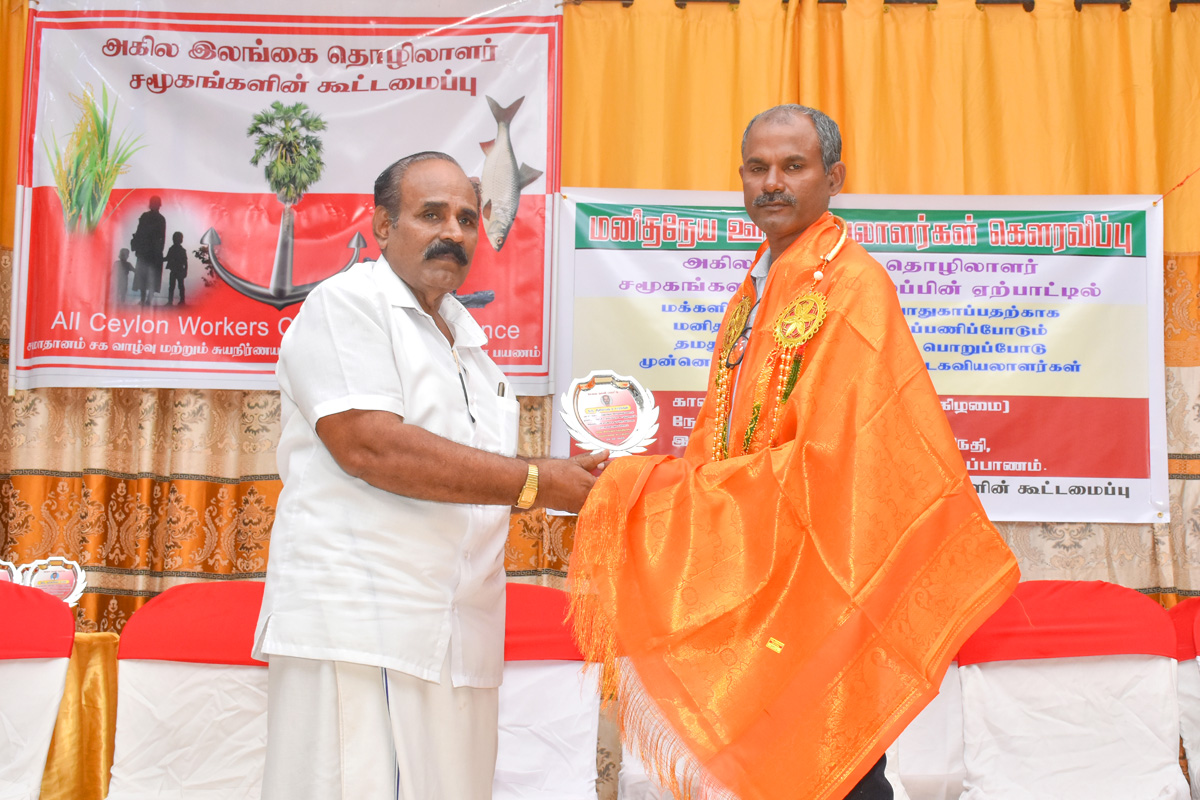 அகில இலங்கை தொழிலாளர் சமூகங்களின் கூட்டமைப்பினால் ஏற்பாடு செய்யப்பட்ட இந்த கௌரவிப்பு நிகழ்வில் மக்களின் உரிமை களப் பாதுகாப்பதற்காக மனித நேயத்தோடும், அர்ப்பணிப்போடும் தமது கடமைகளை வகைப்பொறுப்போடு முன்னெடுத்துவரும் தெரிவுசெய்யப்பட்ட வடக்கு மாகாண ஊடகவியலாளரளே இவ்வாறு கௌரவிக்கப்பட்டனர்.