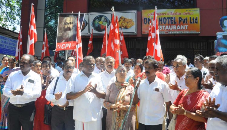 கவர்னரை கண்டித்து கம்யூனிஸ்டு கட்சியினர் கைதட்டி சிரித்து நூதன போராட்டம்!!