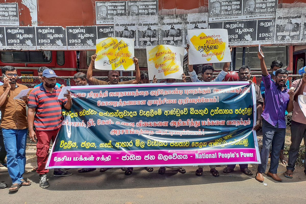 தேசிய மக்கள் சக்தியினரால் ஏற்பாடு செய்யப்பட்ட ஆர்ப்பாட்டமொன்று யாழ்ப்பாணம் மத்திய பேருந்து நிலையத்திற்கு முன்பாக இன்று சனிக்கிழமை(25) காலை 11 மணியளவில் இடம்பெற்றது.