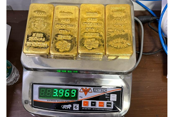 அந்த சாம்பல் நிற பையில் கிட்டத்தட்ட 4 கிலோ (3969 கிராம்) எடையுள்ள நான்கு செவ்வக தங்கக் கட்டிகள் இருந்தன செவ்வக வடிவிலான தங்கக் கட்டிகளின் விலை இந்திய மதிப்பில் ரூ.1,95,72,400 என மதிப்பிடப்பட்டுள்ளது. (இலங்கை பணமதிப்பில் சுமார் ரூ.8 கோடி)
