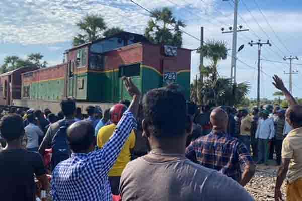 இதன்போது ரயில் கடவையினை மறித்து பொதுமக்கள் போராட்டம் முன்னெடுத்த நிலையில் கொழும்பிலிருந்து மட்டக்களப்பு நோக்கிவந்த ரயில் மட்டக்களப்பு ரயில் நிலையத்திற்கு செல்லமுடியாதவாறு தடுக்கப்பட்டது.