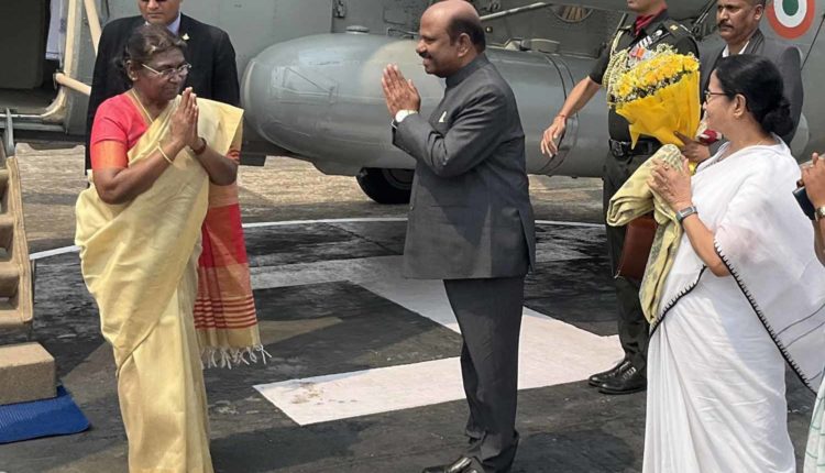 ஜனாதிபதி திரவுபதி முர்மு 2 நாள் பயணமாக மேற்கு வங்காளம் சென்றுள்ளார். இதற்காக கொல்கத்தா சென்ற அவரை முதல் மந்திரி மம்தா பானர்ஜி வரவேற்றார். இந்த வரவேற்பு நிகழ்ச்சியில் பேசிய மம்தா பானர்ஜி, திரவுபதி முர்முவை ‘தங்க மங்கை’ என வர்ணித்தார். மேலும் அவர் பேசியதாவது: பல்வேறு சமூகங்கள், சாதிகள் மற்றும் சமயங்களைச் சேர்ந்த மக்கள் காலங்காலமாக நல்லிணக்கத்துடன் வாழ்ந்து வரும் பெருமைமிக்க பாரம்பரியத்தை நாடு கொண்டுள்ளது.
