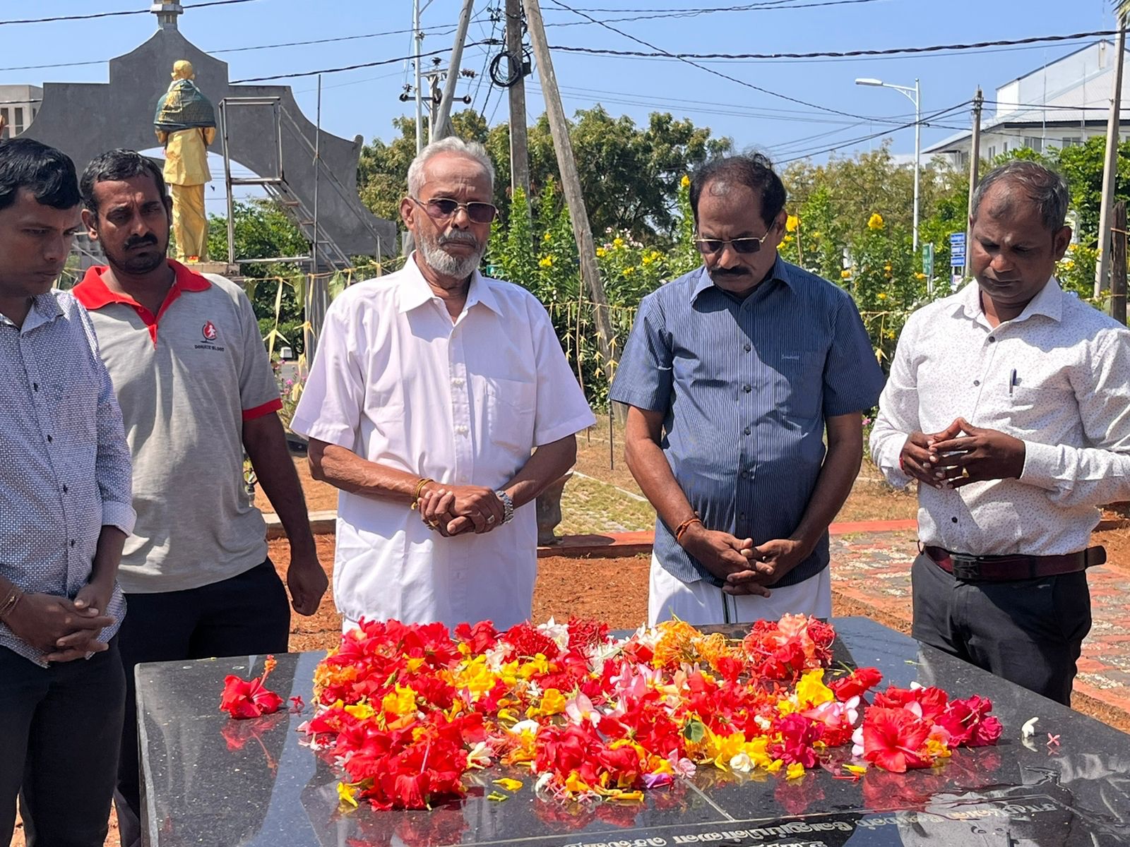 தந்தை செல்வாவின் 125வது ஜனன தினத்தை முன்னிட்டு யாழில் உள்ள தந்தை செல்வா நினைவு சதுக்கத்தில் இன்றைய தினம் வெள்ளிக்கிழமை இலங்கை தமிழரசு கட்சியின் சிரேஸ்ட உபதலைவரும், வடக்கு மாகாணசபையின் அவைத்தலைவருமான சி.வி.கே சிவஞானம், மூத்த பத்திரிகையாளர் என்.வித்தியாதரன், வலி வடக்கு பிரதேச சபையின் தவிசாளர் எஸ்.சுகிர்தன் ஆகியோர் அஞ்சலி செலுத்தினர்.