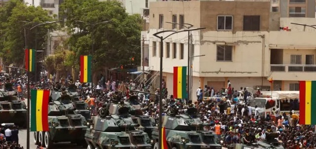 நீண்ட இடைவெளிக்கு பின் நடைபெற்ற ராணுவ அணிவகுப்பில் துப்பாக்கி ஏந்திய வீரர்கள் உற்சாகத்துடன் கலந்துக் கொண்டனர். செனகல் அதிபர் மேக்கி சால் அணிவகுப்பு மரியாதையை ஏற்றுக்கொண்டார். ராணுவ வாகனங்கள் மற்றும் சீருடை அணிந்த வீரர்களின் கண்கவர் அணிவகுப்பை சாலையின் இரு புறங்களிலும் திரண்டு இருந்த மக்கள் ஆர்வமுடன் கண்டு களித்தனர்.