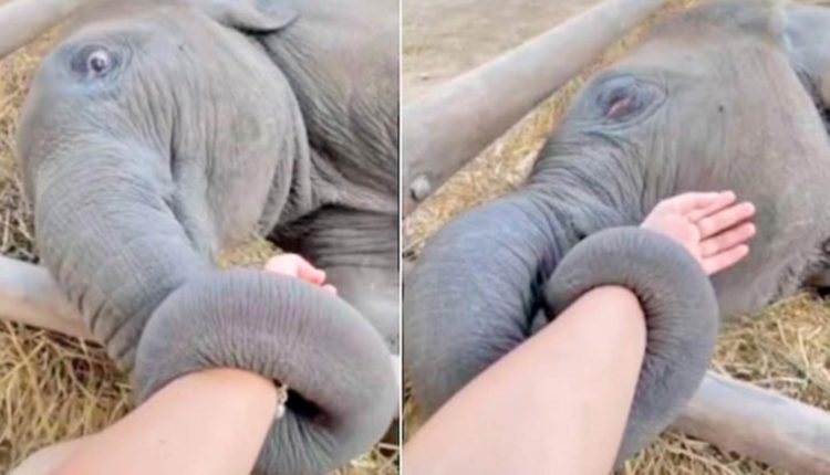 பராமரிப்பாளரின் கையை பிடித்து கொண்டிருக்கும் குட்டி யானையின் வீடியோ!!