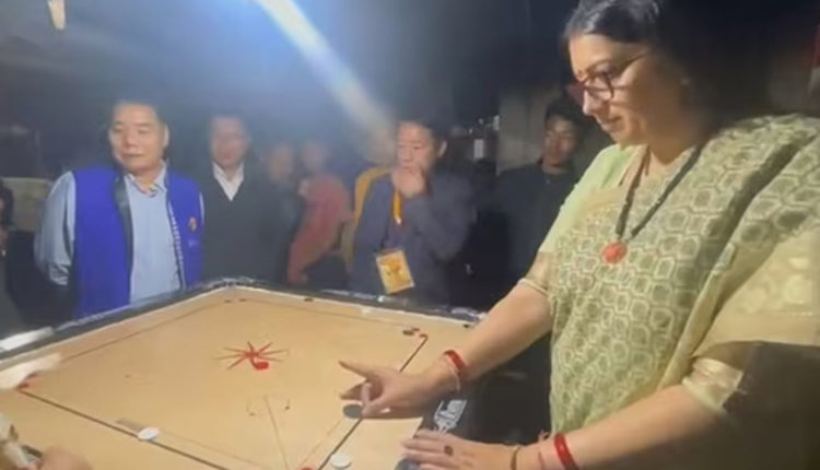 கேரம் விளையாடிய மத்திய மந்திரி ஸ்மிருதி இரானி!!