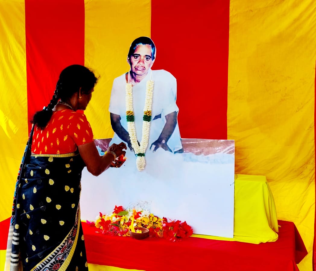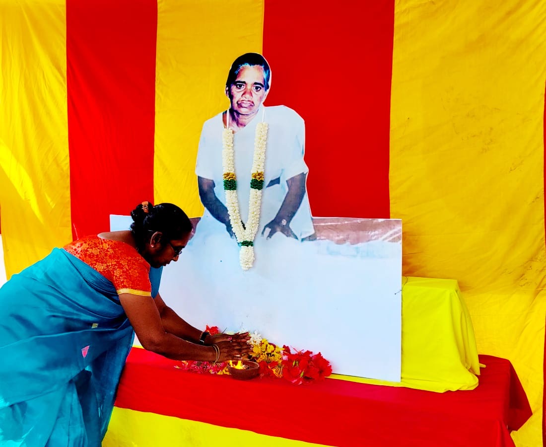 அன்னை ஈகைச் சாவினைத் தழுவிக்கொண்ட நேரமான 8.45 மணி முதல் தியாகத்தாயின் உருவப்படத்திற்கு பொதுமக்கள் மலரஞ்சலி செலுத்தி வருகின்றனர்.