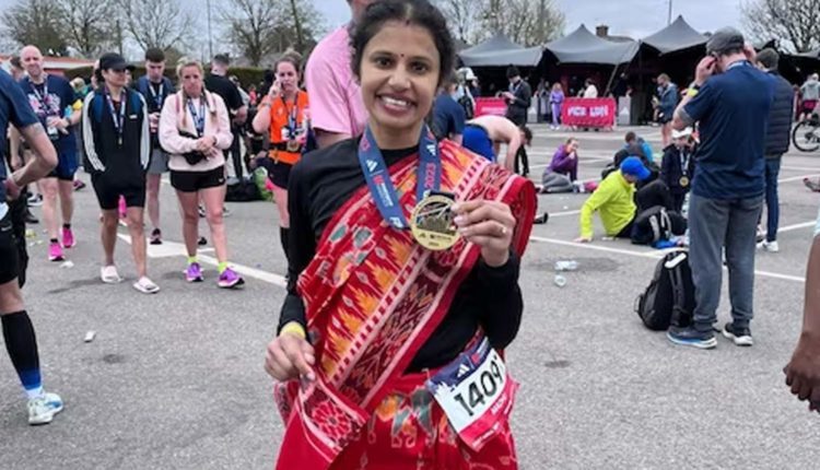 இங்கிலாந்தில் சேலை கட்டிக் கொண்டு 42 கிலோ மீட்டர் தூரம் மாரத்தான் ஓடிய இந்திய வம்சாவளி பெண்!!