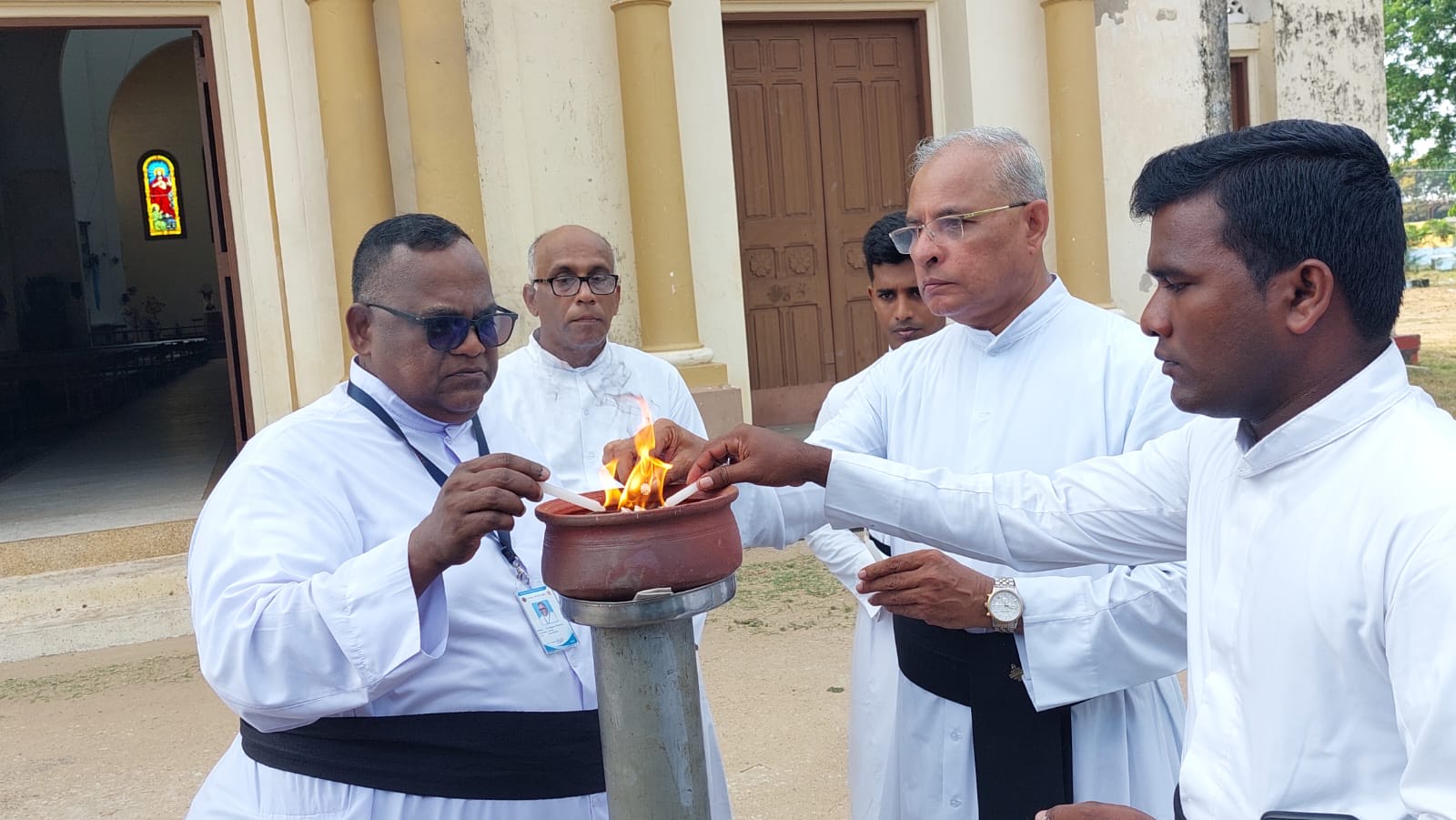 அதன்போது, குண்டு வெடித்த நேரமான 8.42 மணிக்கு தேவாலய மணி ஒலிக்கப்பட்டு உயிரிழந்தவர்களுக்காக இரு நிமிட அகவணக்கம் செலுத்தப்பட்டதுடன் ஈகைச்சுடர் ஏற்றப்பட்டது.