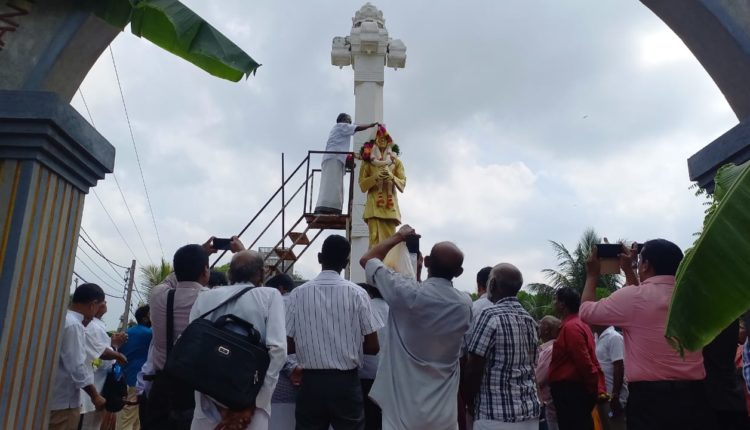 யாழ்ப்பாண பொலிஸ் நிலைய முன்றலில் உள்ள தந்தை செல்வா சதுக்கத்தில் இடிதாங்கி திருட்டு!! (PHOTOS)