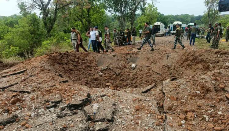 இதனால் அந்த வெடிகுண்டு வெடித்து சிதறியதில் போலீசார் வந்த வாகனம் 20 அடி தூரத்தற்கு தூக்கி வீசப்பட்டு சின்னாபின்னமாக சிதைந்தது. வெடிகுண்டு வைக்கப்பட்டிருந்த சாலையில் மிகப்பெரிய பள்ளம் ஏற்பட்டது. சாலையோரத்தில் நின்றிருந்த சில மரங்கள் வேருடன் சாய்ந்தன. மாவோயிஸ்டுகள் பதுங்கியிருப்பதாக உளவுத்துறை அளித்த தகவலின்படி அப்பகுதியில் போலீசார் ரோந்து சென்றுள்ளனர்.