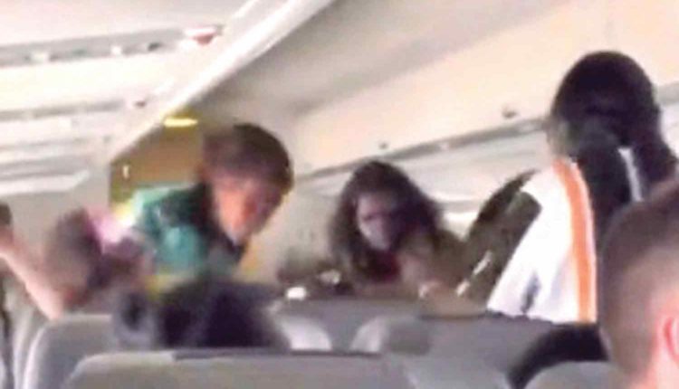 நடுவானில் பறந்த விமானத்தில் பயணிகள் குடுமிப்பிடி சண்டை- பெண் உள்பட 4 பேர் கைது!!