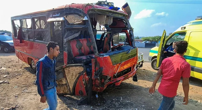தென்மேற்கு எகிப்தில் நியூ பள்ளத்தாக்கு மாகாணத்தில் உள்ள நெடுஞ்சாலை ஒன்றில் 45 பேரை ஏற்றிக் கொண்டு தலைநகர் கெய்ரோவுக்கு பயணிகள் பேருந்து சென்றுக் கொண்டிருந்தது. அப்போது, மெதுவாக ஊர்ந்து சென்றுக் கொண்டிருந்த லாரி மீது இந்த பேருந்து பயங்கரமாக மோதியது. இதில் 17 பேர் உயிரிழந்தனர்.