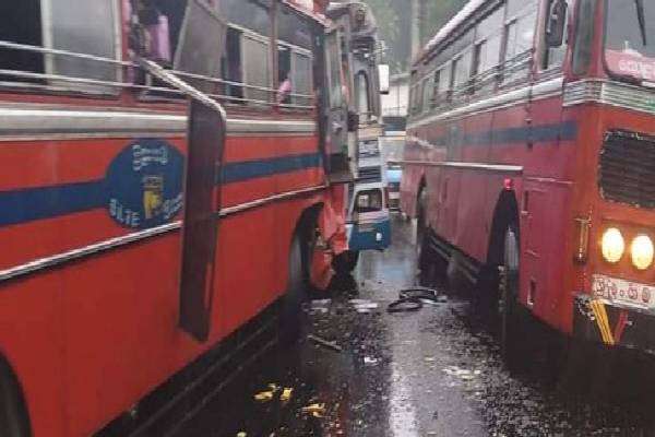 தனியார் பஸ் ஒன்றும் இலங்கை போக்குவரத்து சபைக்கு சொந்தமான இரண்டு பஸ்களும் மோதுண்டே இந்த விபத்து நேர்ந்துள்ளது.