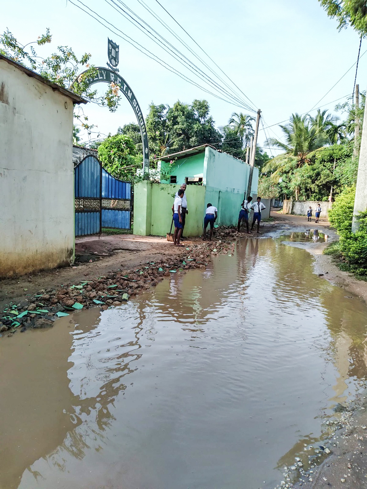இவ்வீதியை புனரமைப்பதற்கு ஆவன செய்து மாணவர்களின் போக்குவரத்திற்கு உதவவேண்டுமேன பாடசாலை நலன்விரும்பிகள் கோரிக்கை விடுத்துள்ளனர்.