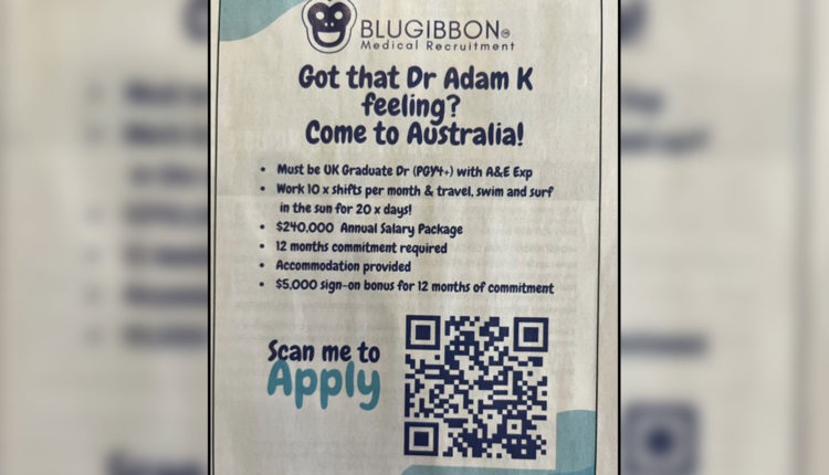 ஒவ்வொரு மாதமும் 20 நாட்கள் விடுமுறை, மீதமுள்ள நாட்களுக்கு கவர்ச்சிகர ஊதியம் வழங்குவதாக கூறும் விளம்பர பதிவு வைரல் ஆகி வருகிறது. ஆஸ்திரேலியாவை சேர்ந்த புளூகிபன் மருத்துவ நிறுவனம் பிரிட்டன் மருத்துவர்களை பணியில் அமர்த்த மிகவும் கவர்ச்சிகர விளம்பரத்தை வெளியிட்டுள்ளது. இந்த விளம்பரம் தற்போது சமூக வலைதளங்களில் வைரல் ஆகி வருகிறது.