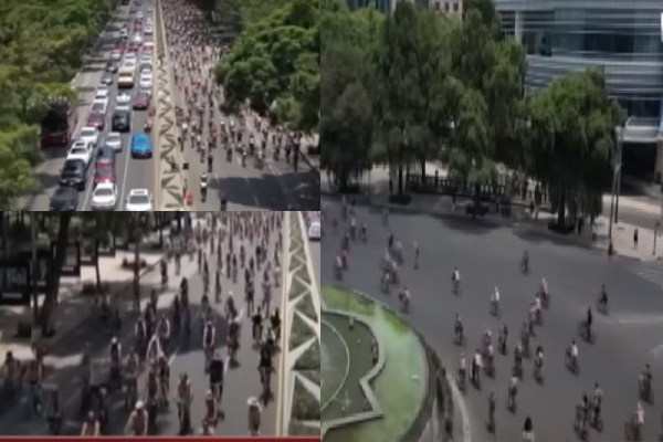 மெக்சிக்கோ நகரில் சுமார் 15 கிலோ மீட்டர் தூரத்திற்கு போக்குவரத்து நெரிசல் மிகுந்த சாலையில் போராட்டக்காரர்கள் நிர்வாணமாக சைக்கிளை செலுத்திச் சென்றுள்ளனர்.